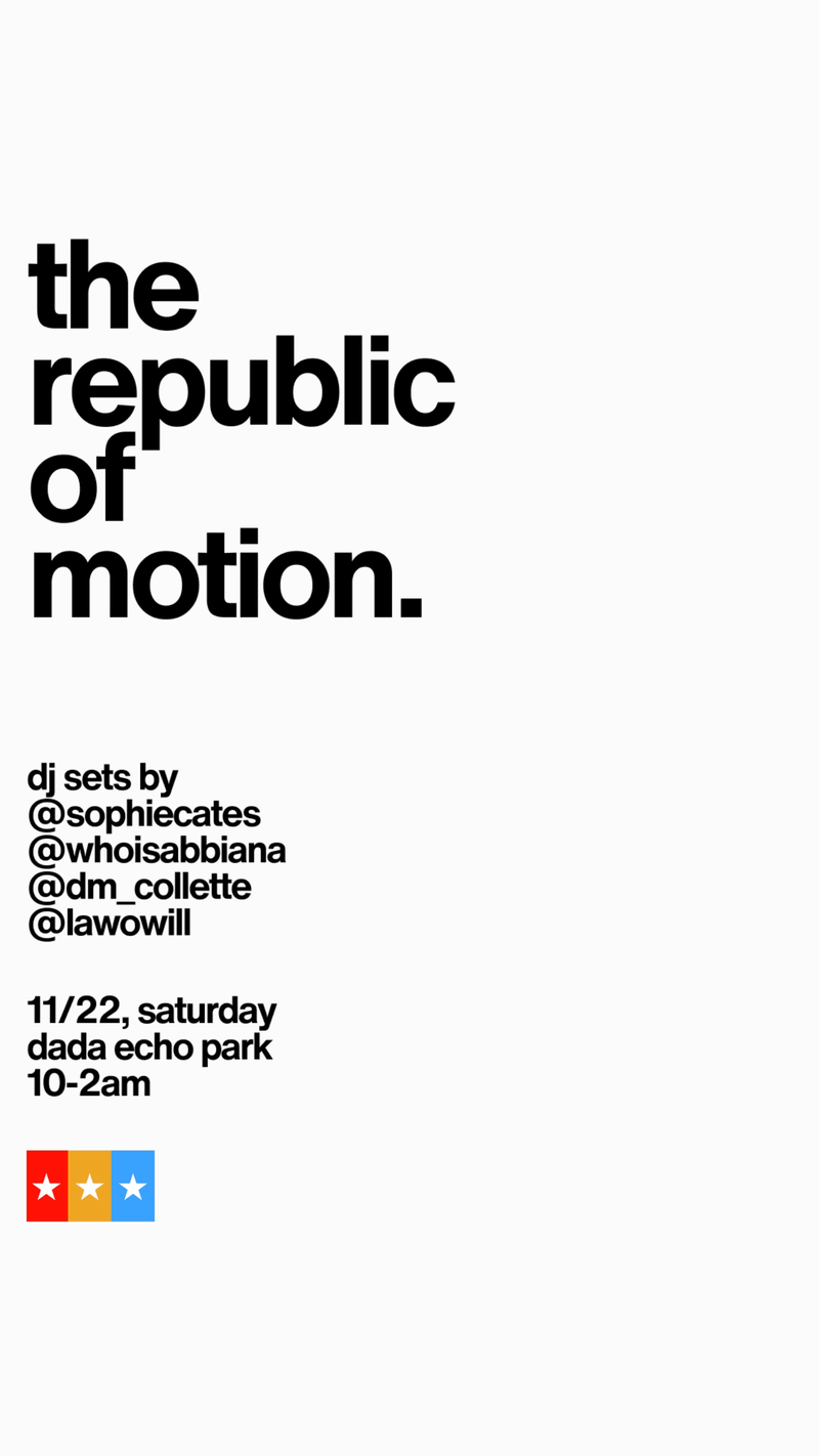 the republic of motion STREAM → LISTEN ON STREAMING → SHOP MERCH →JOIN THE DISCORD → STREAM “AUTOMATIC” → STREAM “HEATWAVE”THE ALBUM → SHOP OFFICIAL “HEATWAVE” MERCHANDISE → WATCH THE HEATWAVE MUSIC VIDEO → WATCH THE “SCAN AND COPY” MUSIC VIDEO → STREAM “ROUND TWO” → LA RSVP: THE REPUBLIC OF MOTION DANCE PARTY → GET “THE REPUBLIC OF MOTION” FLAG → WATCH THE “ONLY U” music video →